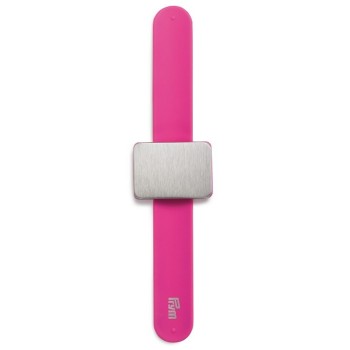 Kulatý jehelníček na ruku ve švestkově modré s variabilním zapínáním na suchý zip