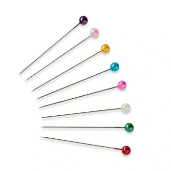 Odolné špendlíky s lesklou perličkovou hlavičkou v různých barvách v plastové dóze