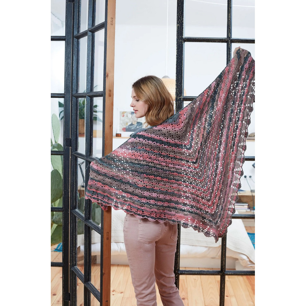 Vícebarevná kvalitní příze v nádherných živých barevných kombinacích (vytváří proužky v plynulých barevných přechodech) na háčkování a pletení příjemného měkkého oblečení, barevných šátků a jiných doplňků pro celou rodinu.