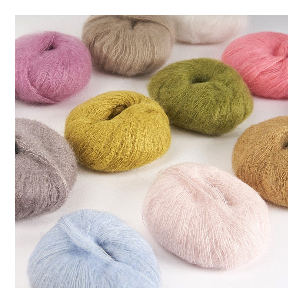 Oblíbená stálice britské značky ROWAN kombinující jemnou auru super jemného mohéru s leskem hedvábí v jedné neuvěřitelné přízi, kterou milují pletařky po celém světě. Kidsilk Haze lze použít s různými velikostmi jehlic k vytvoření různých efektů a stylů, je také velkým favoritem u milovníků krajkových vzorů. V kombinaci s jinými přízemi získává téměř magickou kvalitu a pro kombinování je k dispozici v široké škále úžasných barev.