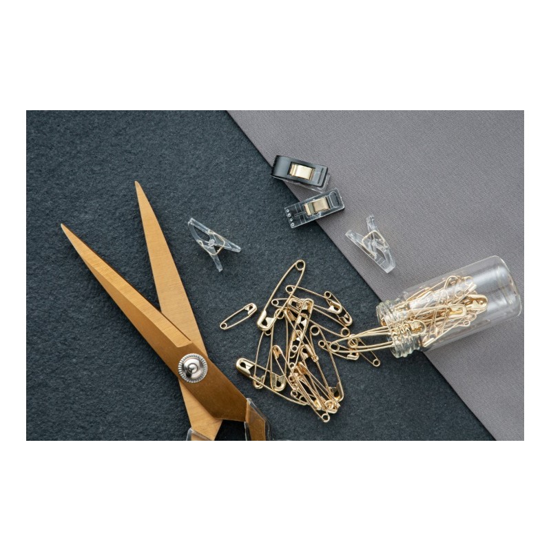 Spínací špendlíky zlaté 50 ks ve skleněné dóze Hemline Gold