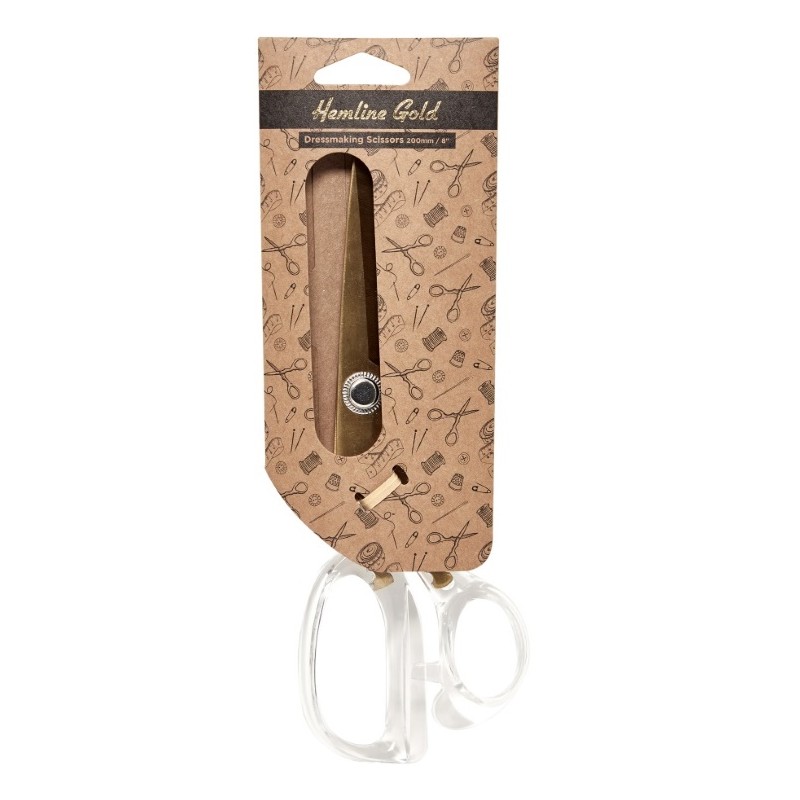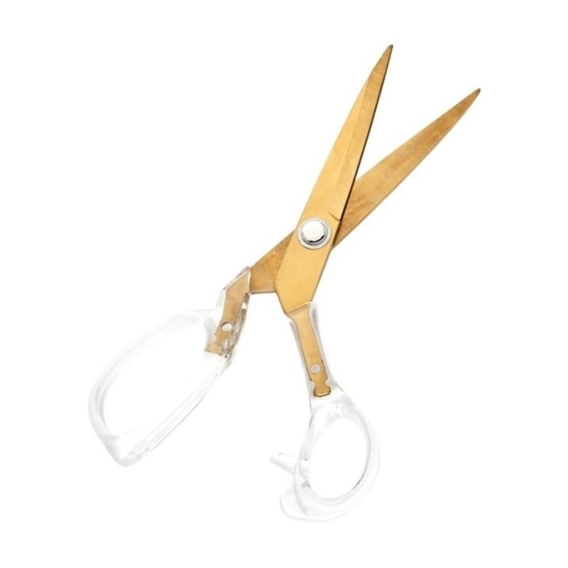 Krejčovské nůžky Premium (20 cm) s odolnými čepelemi z nerezové oceli ve zlaté barvě a rukojeťmi v elegantním transparentním provedení