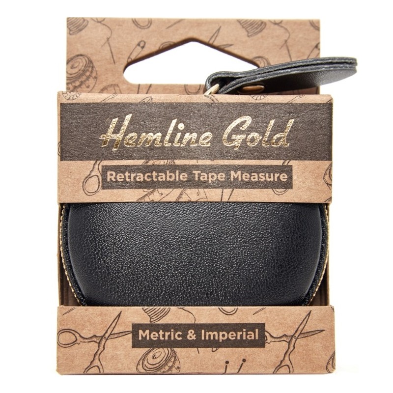 Svinovací metr 150 cm v koženkovém pouzdru se zlatým zipem Hemline Gold