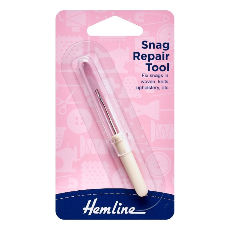 Pomůcka s háčkem pro zatahování vytažených ok na oděvech a pletených oděvech nebo i třeba na čalounění. S ochranným víčkem.