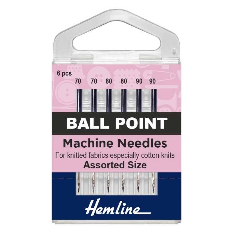 Balení 5 jehel do šicího stroje ve velikostech 70-90 s kuličkovým hrotem navržených speciálně pro úplety (obzvláště bavlněné úplety), žerzeje a interlocky.