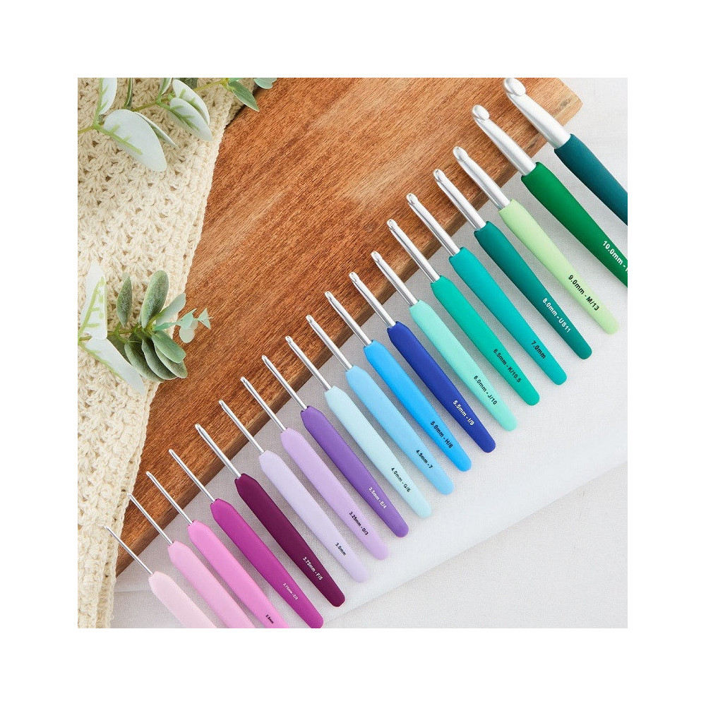 Více se dočtete v popisuPletací háčky z řady Waves od KnitPro jsou vyrobené z lehkého hliníku s ergonomicky tvarovanými rukojeťmi, které poskytují pohodlný úchop a snižují námahu a únavu rukou. Každá velikost háčku má svoji krásnou barvu rukojeti.