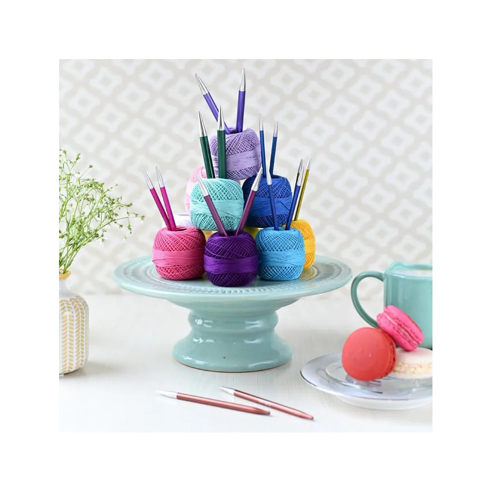 Více se dočtete v popisuHliníkové šroubovací (výměnné) kruhové jehlice z řady Zing od KnitPro v nádherných metalických barvách se stříbrnými špičkami a koncovkami