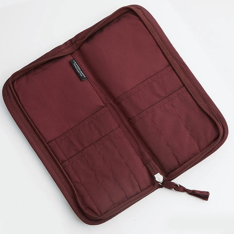 Polstrované pouzdro obsahuje vnitřní kapsy pro bezpečné uložení jehlic (i jiného příslušenství) a jejich organizaci podle velikostí. Zapínání je na zip.