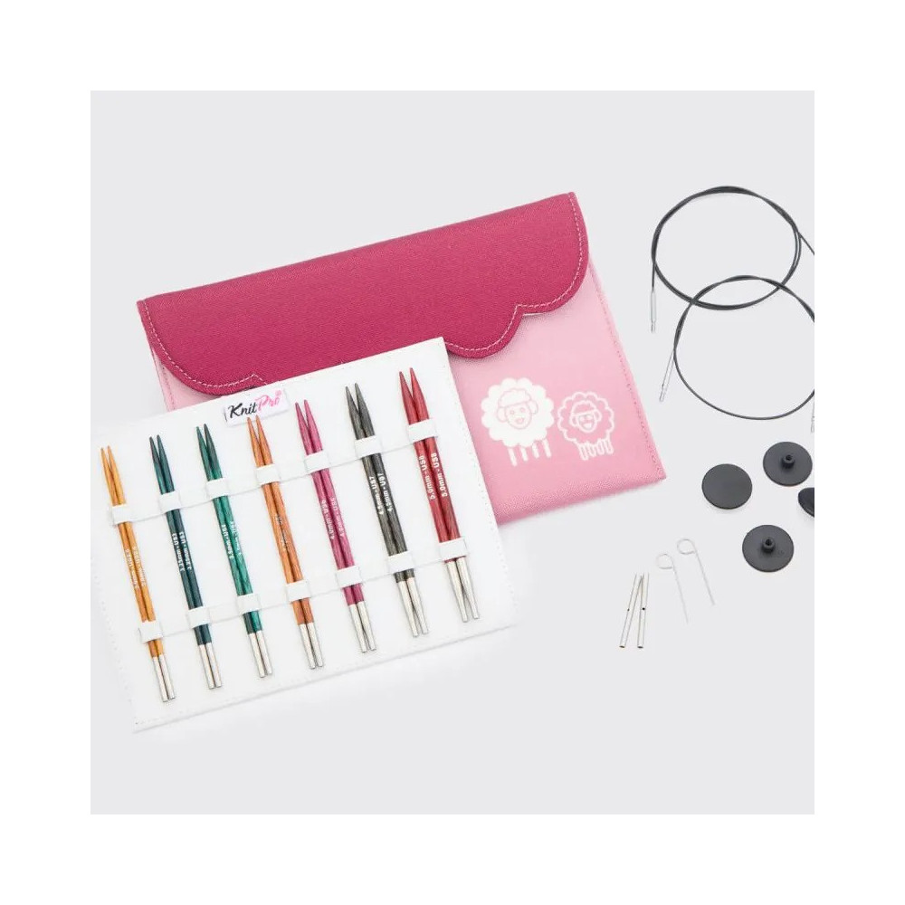 KnitPro Dreamz midi set dřevěných šroubovacích kruhových jehlic a příslušenství