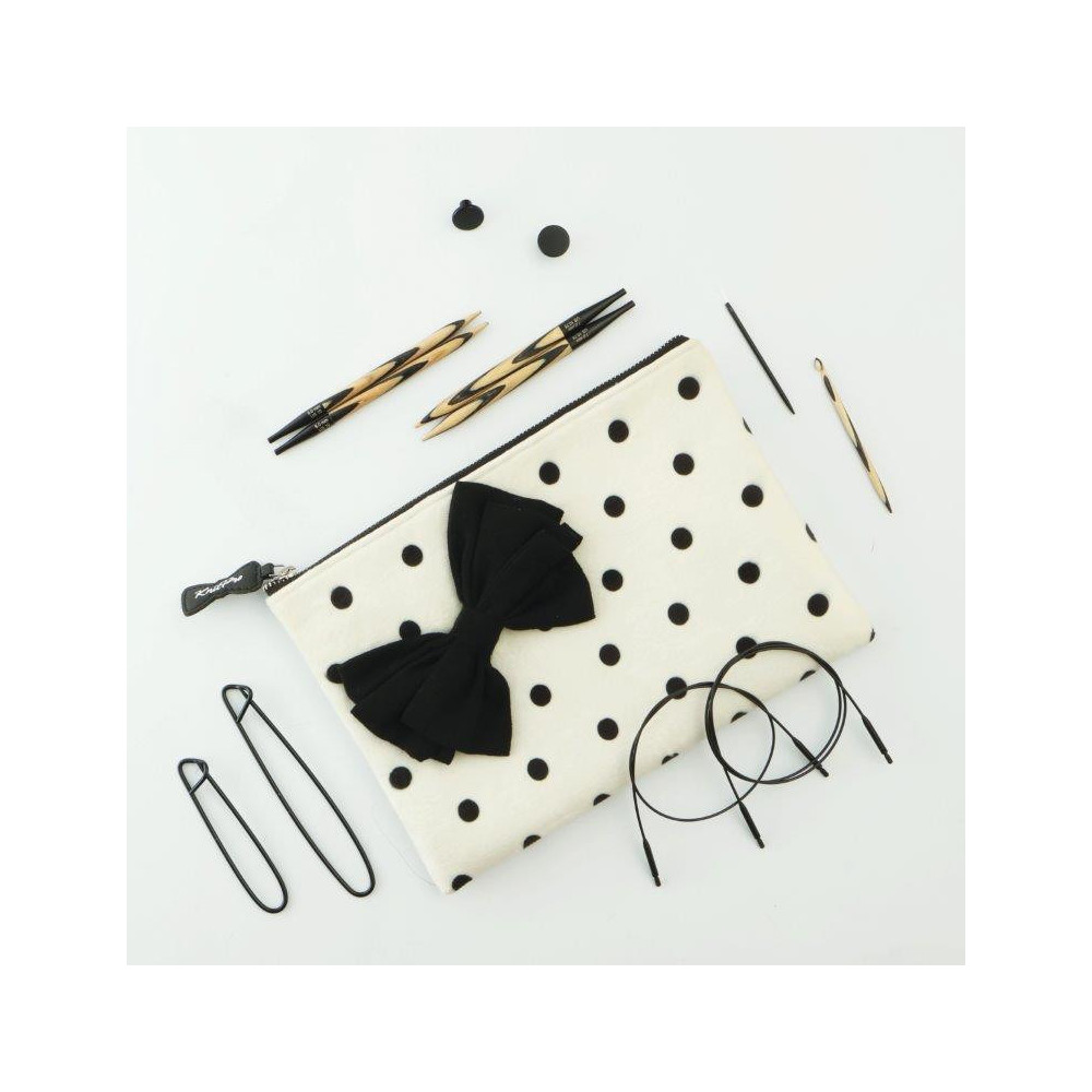 Celá sada je uložena v elegantním textilním pouzdře s puntíkovým vzorem a výraznou černou mašlí, které podtrhuje slavnostní charakter této limitované edice.