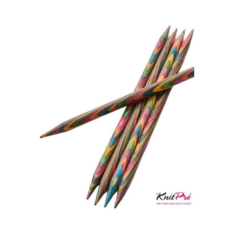 Oboustranné (ponožkové) jehlice z nádherně probarveného dřeva KnitPro Symfonie.