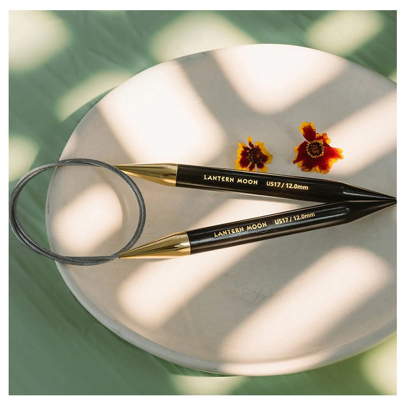 Kruhové jehlice ze vzácného ebenového dřeva KnitPro Lantern Moon s dokonale tvarovanými špičkami a 24K mosaznými koncovkami