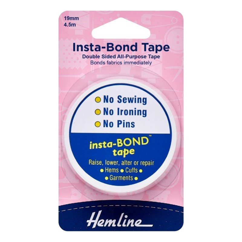 Oboustranná lepící páska (4,5 m x 19 mm) na dočasné přichycení záložek, ramínek, zipů, prýmek apod. před jejich přišitím bez zdlouhavého špendlení.