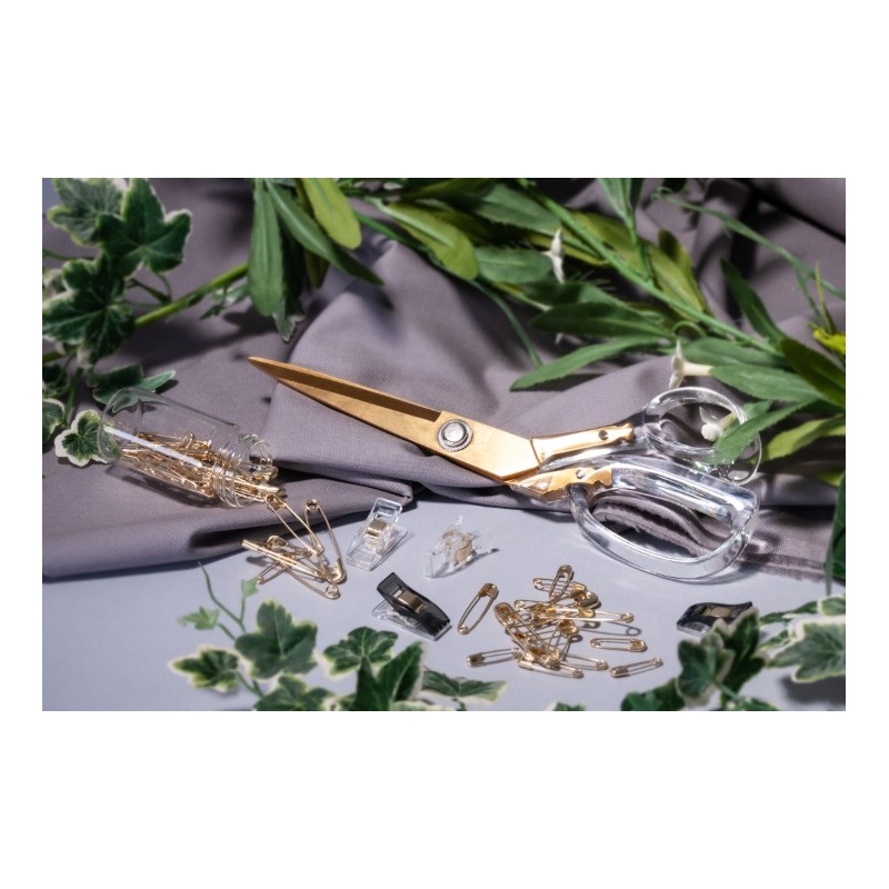 Krejčovské nůžky Premium (20 cm) s odolnými čepelemi z nerezové oceli ve zlaté barvě a rukojeťmi v elegantním transparentním provedení