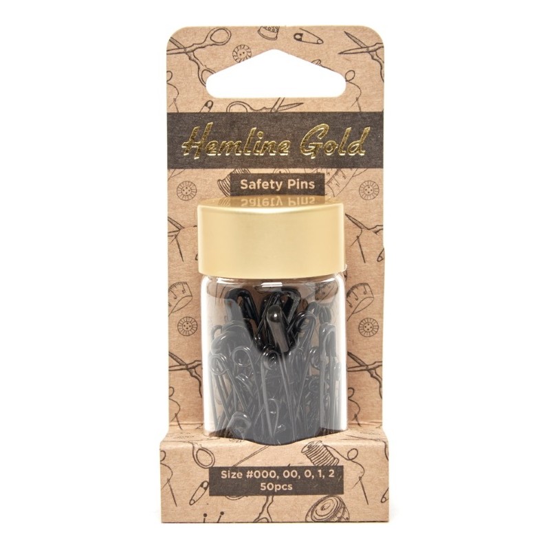 Artikl 415.99.BK.HG Spínací špendlíky černé 50 ks ve skleněné dóze Hemline Gold, VO balení 5 karet