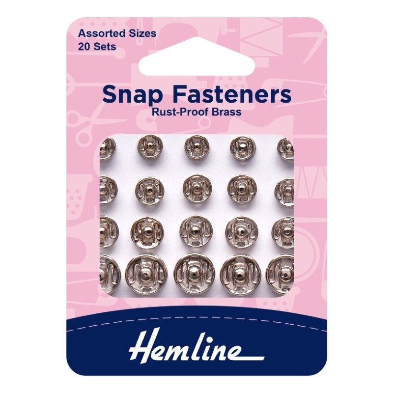 Artikl 420.99 Patentky 20 ks stříbrné Hemline, VO balení 5 karet