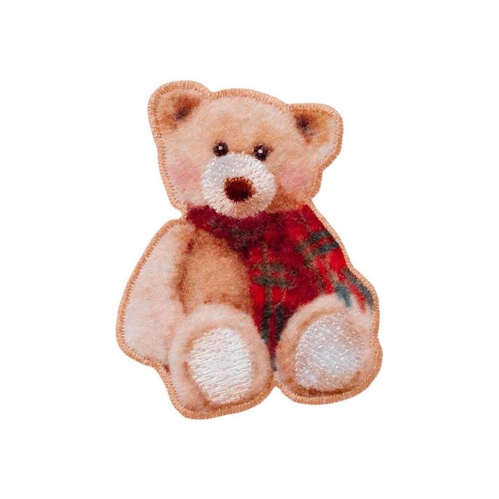 Nažehlovačka Medvídek s károvanou šálou 6 x 4,7 cm Monoquick