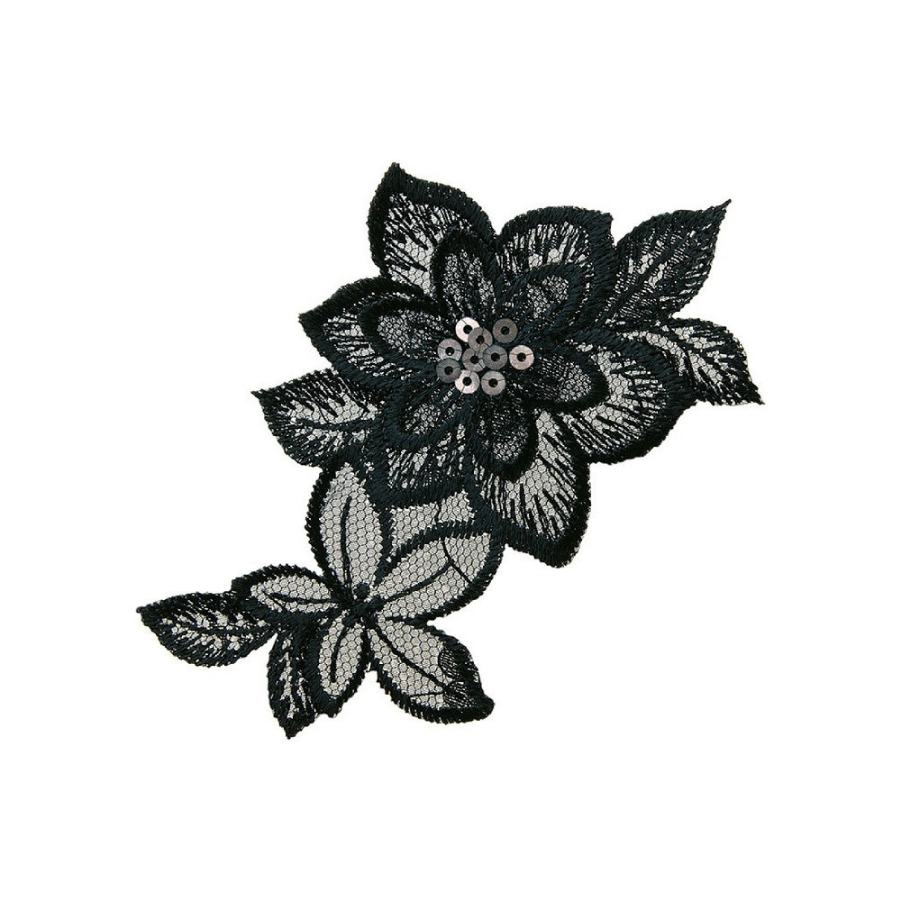 Nažehlovačka Černí krajková květina s flitry 9 x 9,5 cm Monoquick
