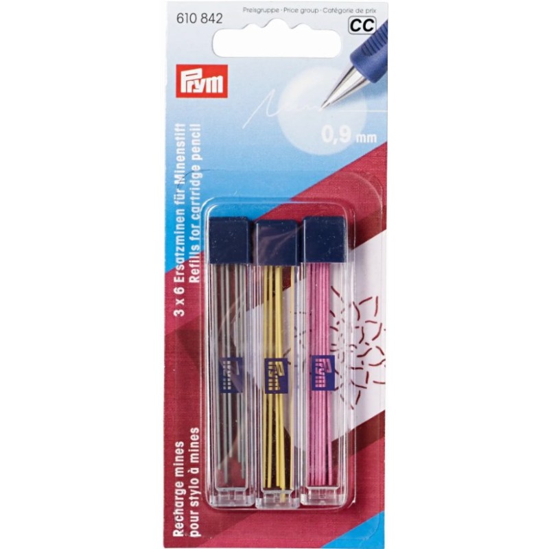 Více se dočtete v popisu18 (3 x 6) náhradních barevných křídových náplní 0,9 mm do plnícího pera PRYM (art. 610840, 610848, 610850) uložených v plastovém boxu.