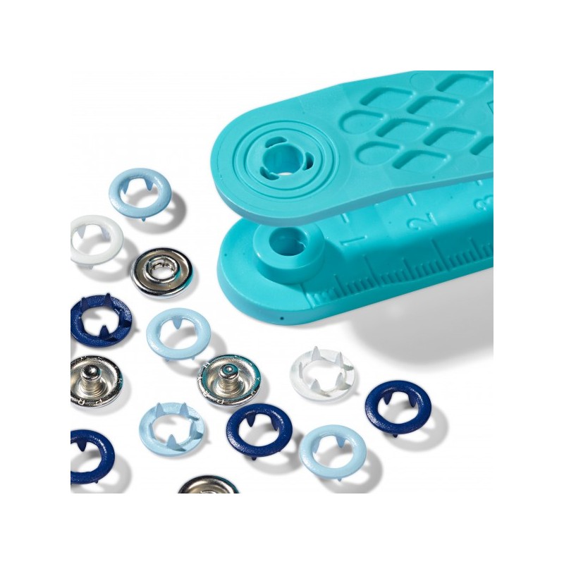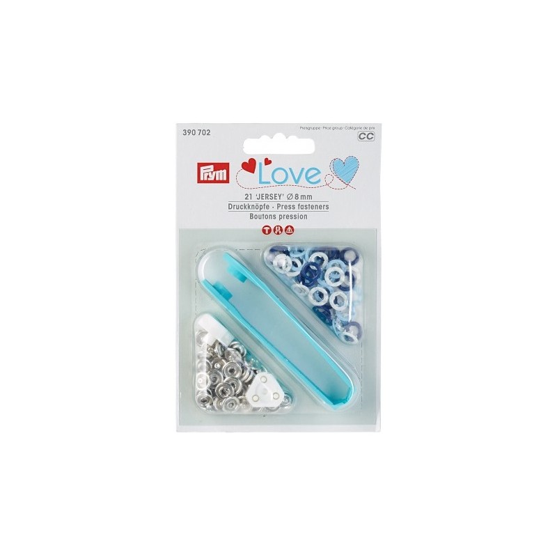 Knoflíky stiskací JERSEY kroužky 8 mm (21 ks) + narážeč PRYM Love