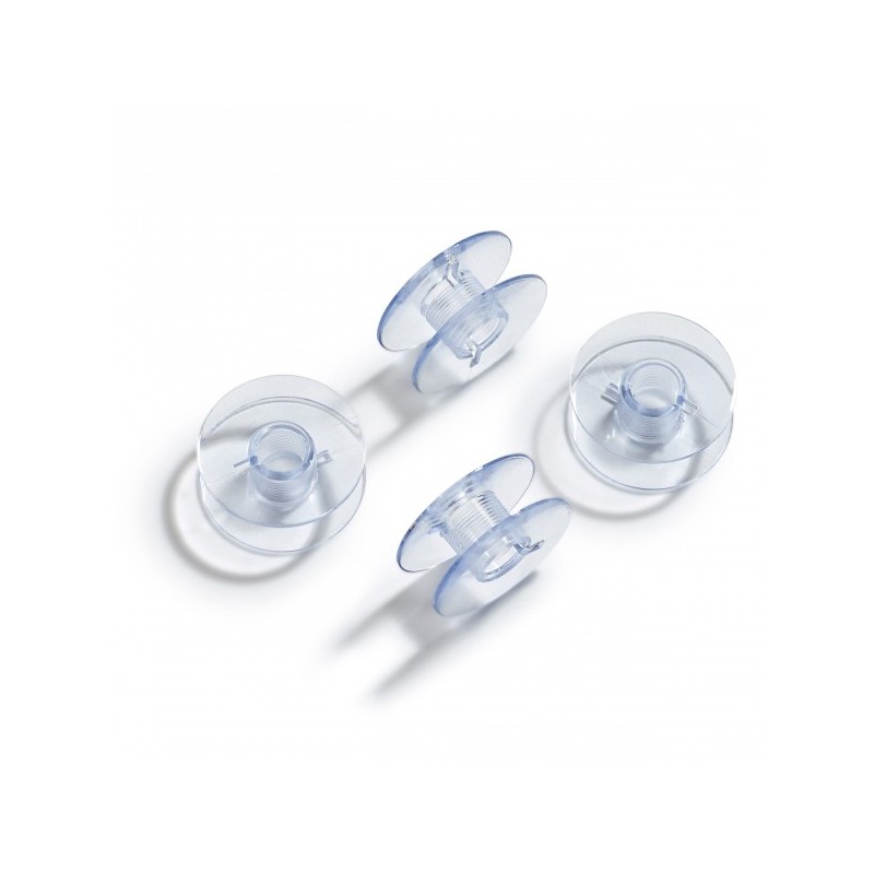 Více se dočtete v popisuCívky 21,2 x 9,2 mm pro malý rotační chapač z transparentního plastu. Díky transparentnímu plastu pomáhá získat lepší přehled o barvě navinuté nitě a zbývajícím množství nitě.