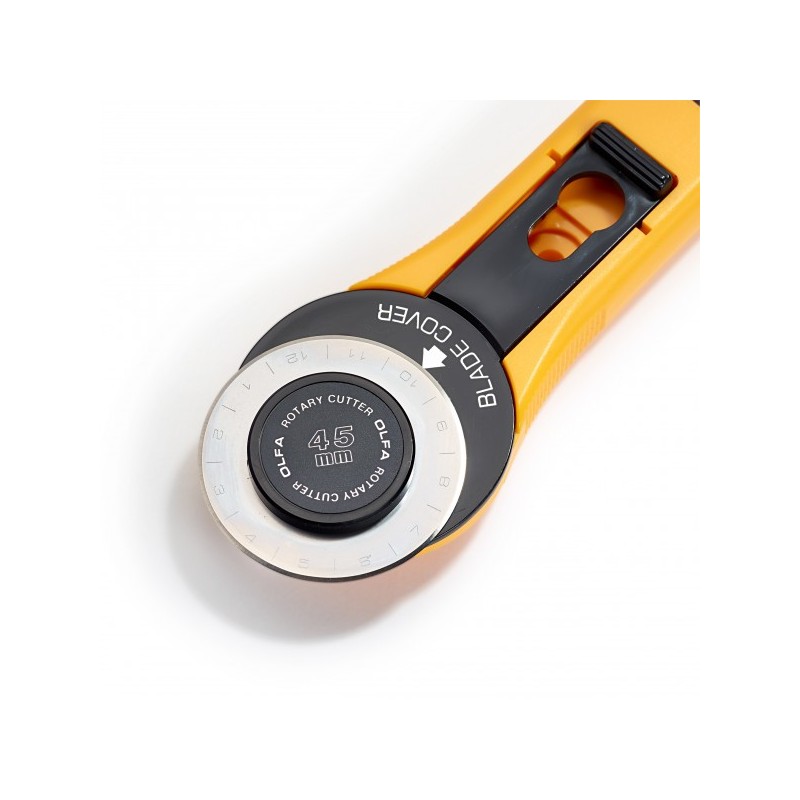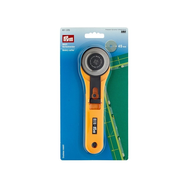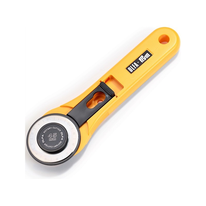 Více se dočtete v popisuRotační řezací kolečko (Ø 45 mm) MAXI od firmy OLFA je nepostradatelnou pomůckou při šití, patchworku a dalších kreativních pracích. Ostrá čepel kolečka prořízne i několik vrstev látky najednou (4 až 8 dle druhu látky) s milimetrovou přesností. Kolečkem lze řezat dopředu i dozadu. Další předností řezacího kolečka je jeho patentovaný bezpečnostní systém - po použití se kolečko jednoduše zasune do bezpečností polohy, ostří kolečka je zakryto, nehrozí tak jeho poškození ani zranění uživatele. Řezák je vhodný pro praváky i leváky.