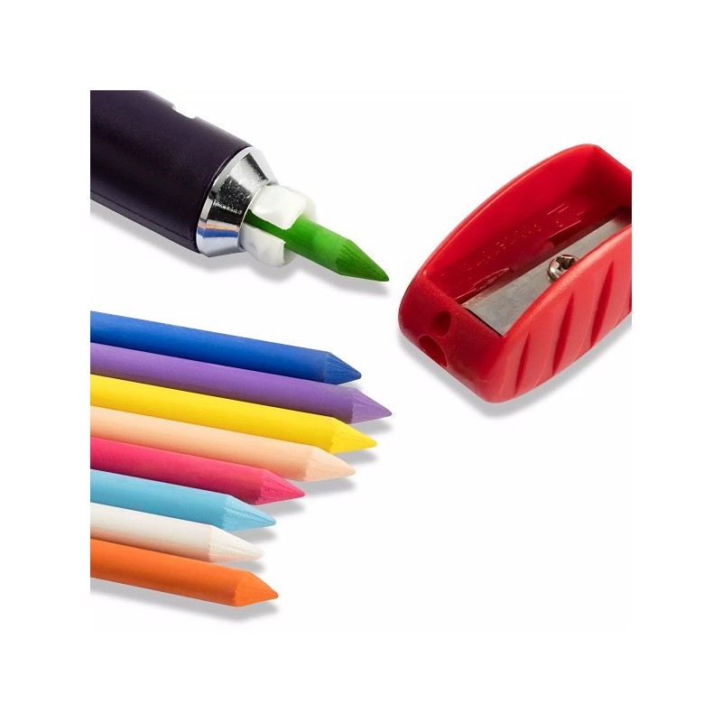 Mechanická tužka na křídy s integrovanou gumou, ořezávátkem a 16 náhradními křídami