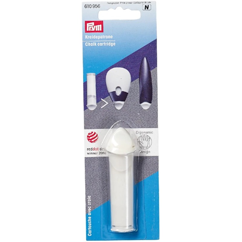 Náhradní krejčovská křídová náplň bílá pro Prym art. 610943, 610950, 610955, 61058, včetně rotačního hrotu (kolečka) a ochranného víčka. Krejčovská křída ve formě prášku jde vykartáčovat nebo smýt.
