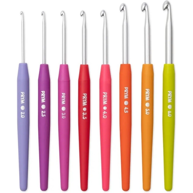 Pletací háčky s jemnou rukojetí sada velikostí 2,00, 2,50, 3,00, 3,50, 4,00, 4,50, 5,00, 6,00 PRYM