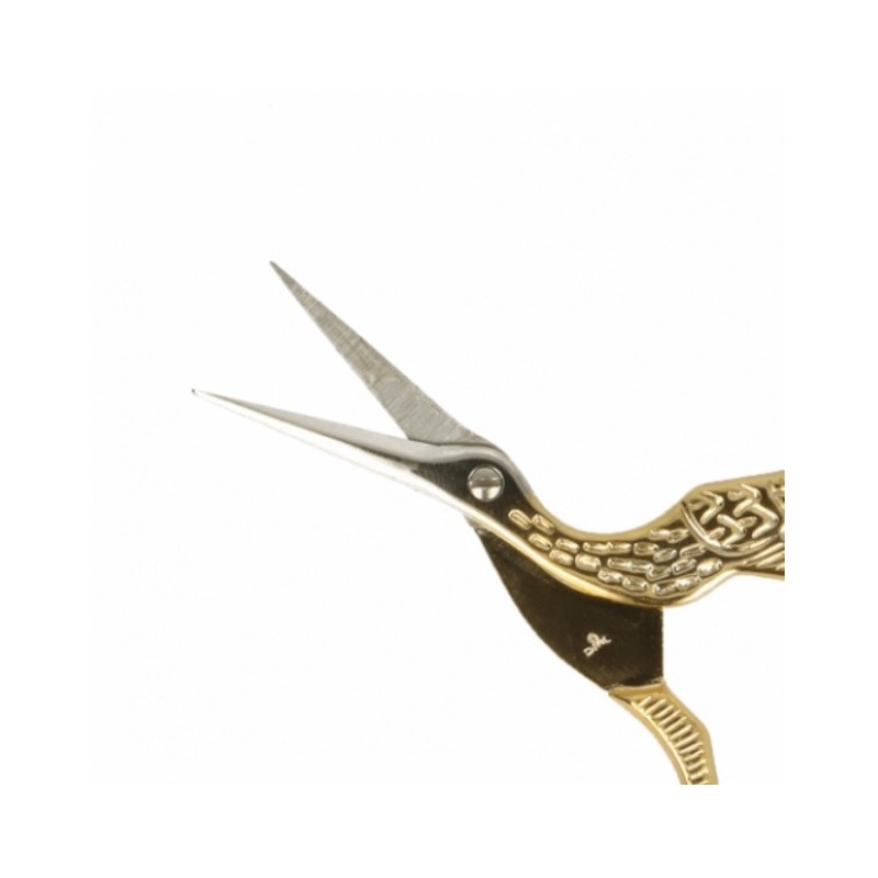 Ozdobné nůžky na vyšívání ve zlaté barvě s motivem čápa
