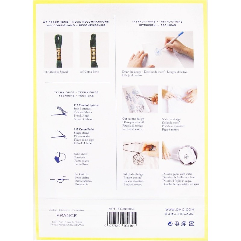 Snadný postup: Nakreslete nebo obkreslete svůj návrh na vlizelínový papír, vystřihněte jej, odstraňte podklad a přilepte jej k látce. Jakmile budete s umístěním spokojeni, vyšijte svůj návrh přes vlizelínový papír. Hotovou výšivku několik sekund proplachujte pod vodou, dokud se vlizelínový papír zcela nerozpustí. Na látce zůstane pouze krásná výšivka.