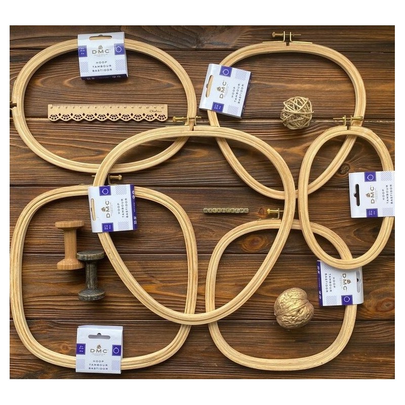 Dřevěný bukový vyšívací čtverec, ovál nebo trojúhelník s mosazným šroubováním DMC