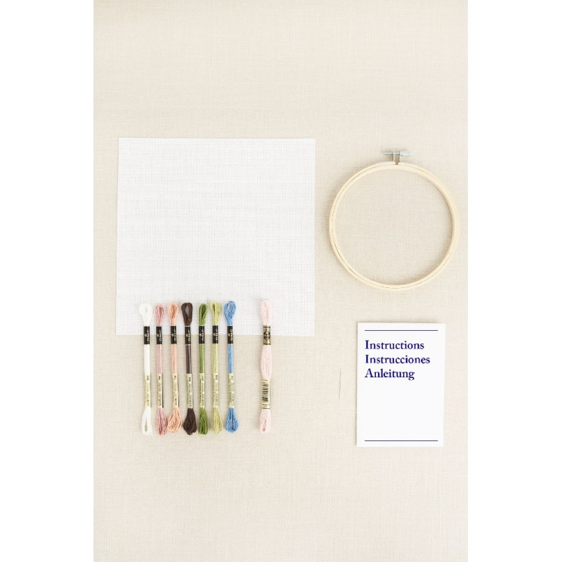 Sada obsahuje vše potřebné k vyšití motivu křížkovým stehem: vyšívací bavlnky DMC Mouliné Spécial, vyšívací látku s čtverečkovanou strukturou 100% bavlna, 1 vyšívací jehlu, 1 dřevěný vyšívací kroužek o průměru 14,5 cm a obrázkový návod
