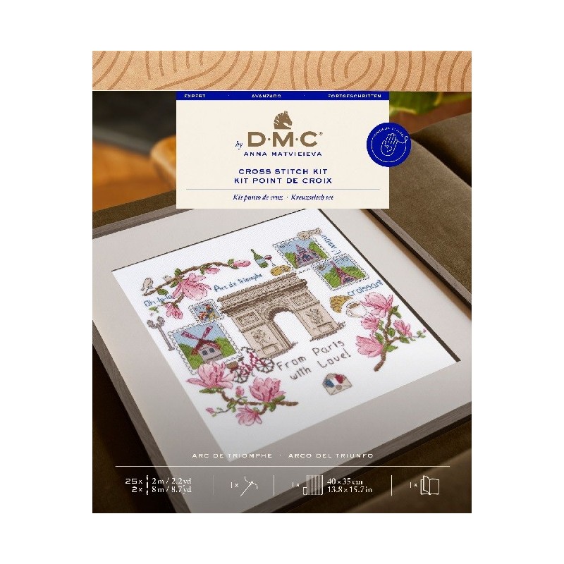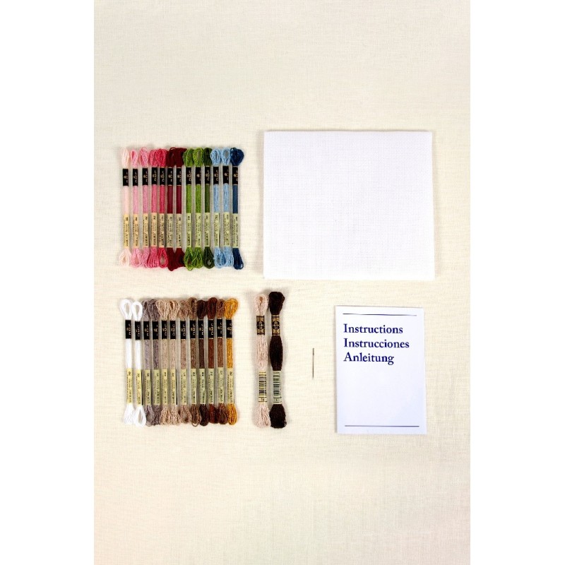 Sada obsahuje vše potřebné k vyšití motivu křížkovým stehem: vyšívací bavlnky DMC Mouliné Spécial, vyšívací látku s čtverečkovanou strukturou 100% bavlna, 1 vyšívací jehlu a obrázkový návod