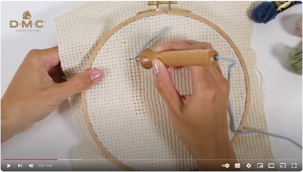 Jehla se navléká pomocí elegantního dřevěného navlékače (jehly) o délce 16,5 cm, který je součástí balení. Tuto dřevěnou jehlu lze také použít k zajištění volných konců na konci vašeho projektu.