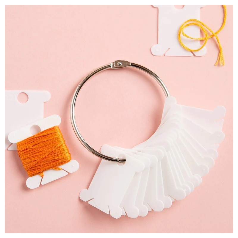 Plastové namotávky na bavlnky DMC (28 ks) na kovovém kroužku o průměru 6 cm