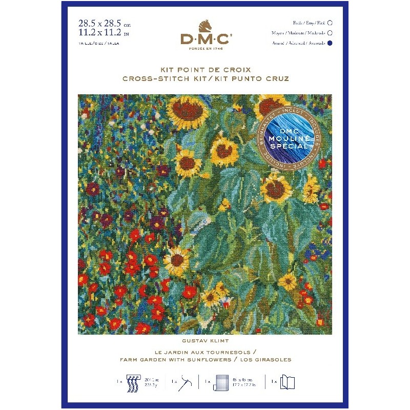 Více se dočtete v popisuZahrada se slunečnicemi je mistrovské dílo moderního umění vytvořené Gustavem Klimtem. Vy si jej můžete pomocí této sady s vyšívacími přízemi DMC Mouliné Spécial přenést i do svého domova.
