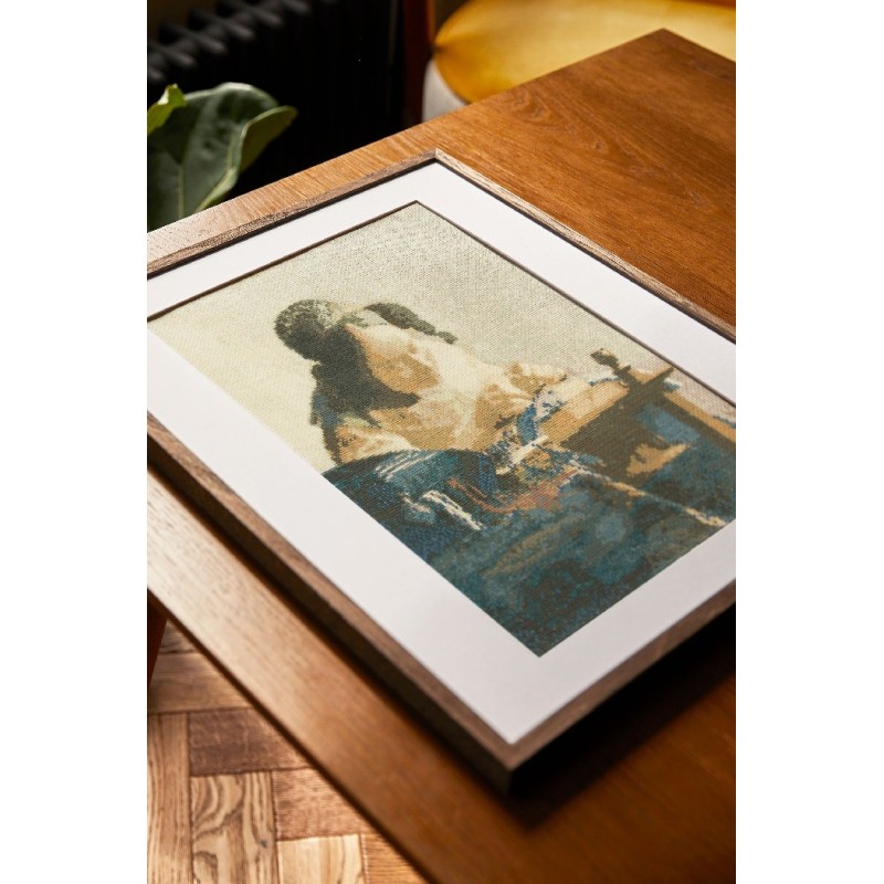 Sada pro křížkové vyšívání mistrovského díla Johannese Vermeera The Lacemaker - Krajkářka