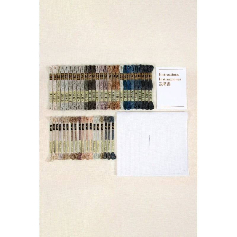 Sada obsahuje vše potřebné k vyšití předlohy křížkovým stehem: vyšívací příze DMC Mouliné Spécial 100% bavlna, látku s čtverečkovanou strukturou AIDA 100% bavlna 14ct / 5,5 pts/cm, 1 vyšívací jehlu, vyšívací předlohu (diagram), obrázkový návod
