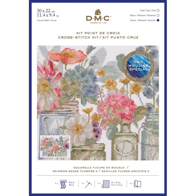 Sada obsahuje vše potřebné včetně nejkvalitnějších vyšívacích bavlnek DMC Mouliné Spécial k vyšití krásného obrázku křížkovým stehem