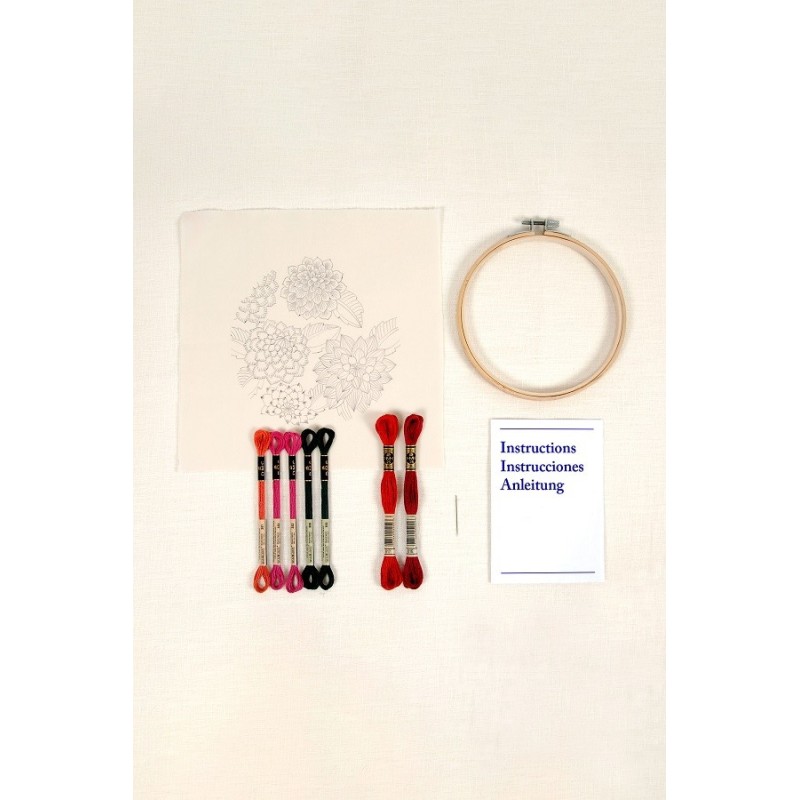 Sada obsahuje vše potřebné k vyšití motivu: vyšívací bavlnky DMC Mouliné Spécial, předtištěnou vyšívací látku 100% bavlna, 1 vyšívací jehlu, 1 dřevěný vyšívací kroužek a obrázkový návod