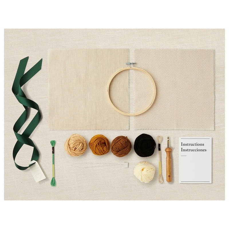 Sada obsahuje vše potřebné včetně dřevěného kroužku a duté jehly na tvorbu obrázku dutou jehlou technikou punch needle