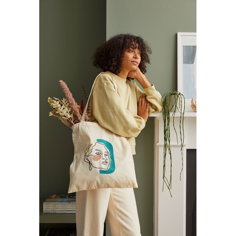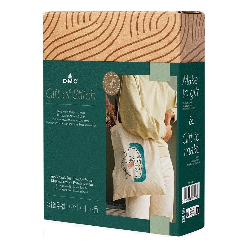 Sada Plátěná taška s portrétem Line Art na tvorbu dutou jehlou punch needle DMC