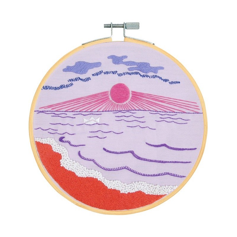 Sada obsahuje vše potřebné k vyšití obrázku včetně barevného plátna a dřevěného vyšívacího kroužku