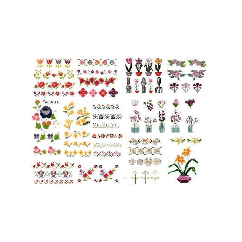 Publikace se 100 předlohami pro vyšívání křížkovým stehem, s klíčem pro barvy vyšívacích přízí DMC Mouliné Spécial art. 117MC