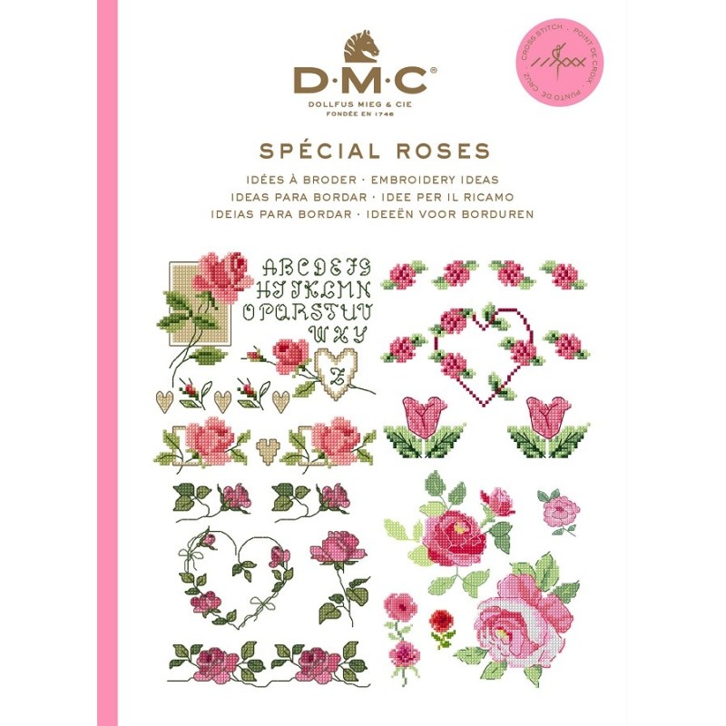 Publikace se 100 předlohami pro vyšívání křížkovým stehem, s klíčem pro barvy vyšívacích přízí DMC Mouliné Spécial art. 117MC