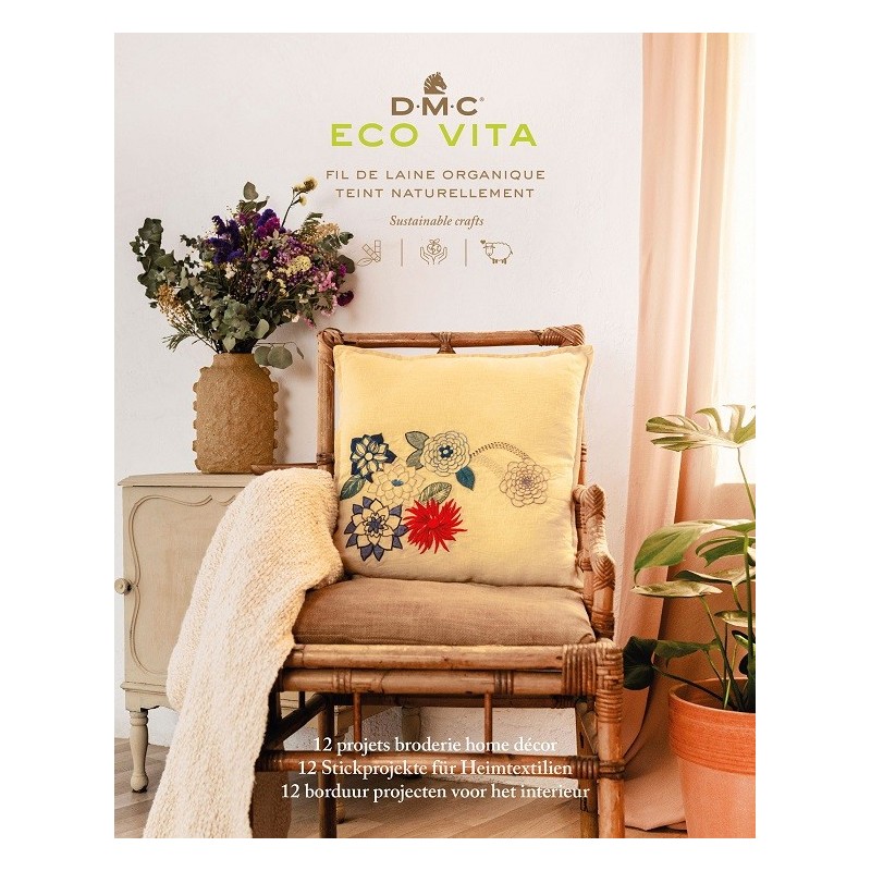 Více se dočtete v popisuPublikace s 12 projekty pro výšivku domácích dekorací, s klíčem pro barvy organických přízí DMC Eco Vita