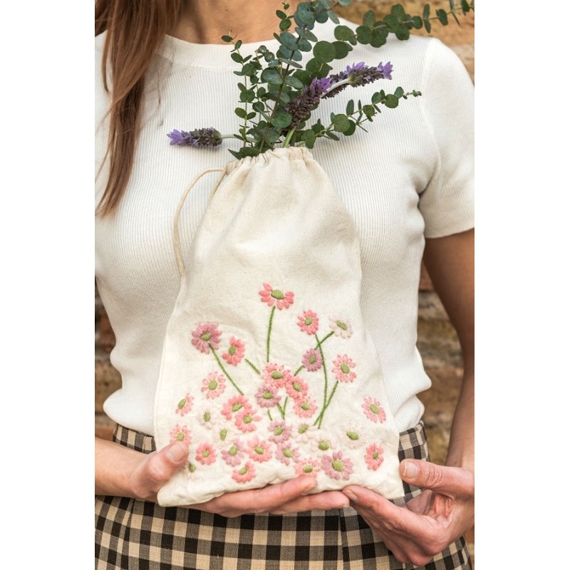 Publikace s 12 projekty pro výšivku domácích dekorací, s klíčem pro barvy organických přízí DMC Eco Vita
