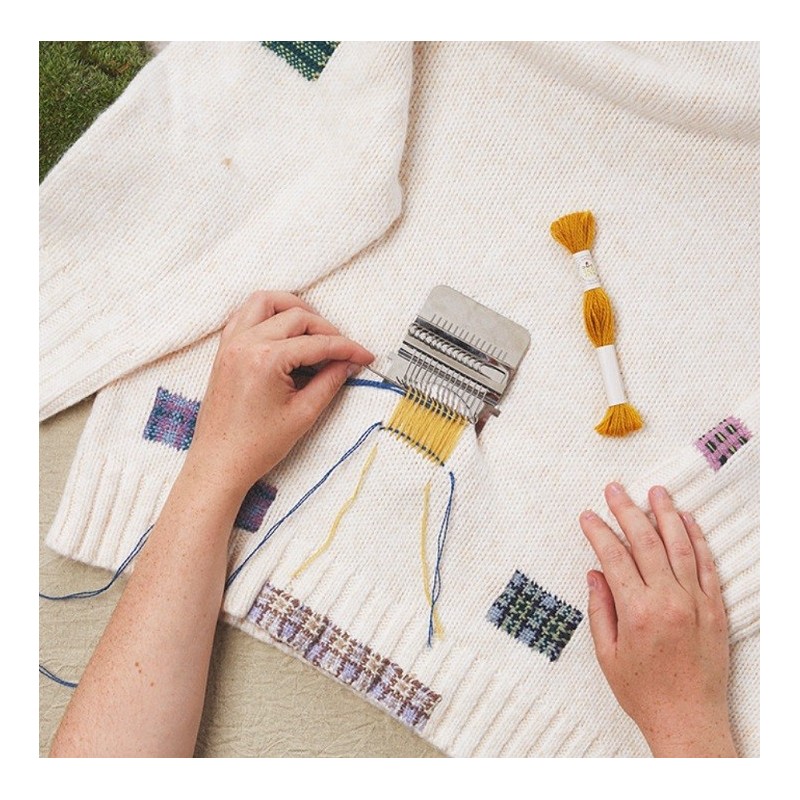 Více se dočtete v popisuMini tkalcovský stav je ideální nástroj pro zkoušení technik zašívání, zdobení nebo oživení oblíbených kousků oblečení - svetrů, čepic, ponožek apod. K použití nejsou třeba žádné zkušenosti s tkaním nebo vyšíváním. Jednoduše naskenujte QR kód na obalu, který Vás provede vašimi prvními kroky upcyklace.